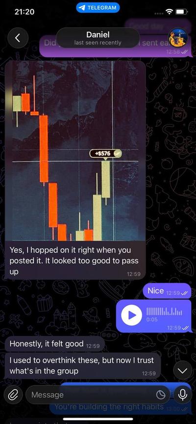 Ziad's team analyzes the market live. When a high-confidence setup is found, a signal goes to every member instantly